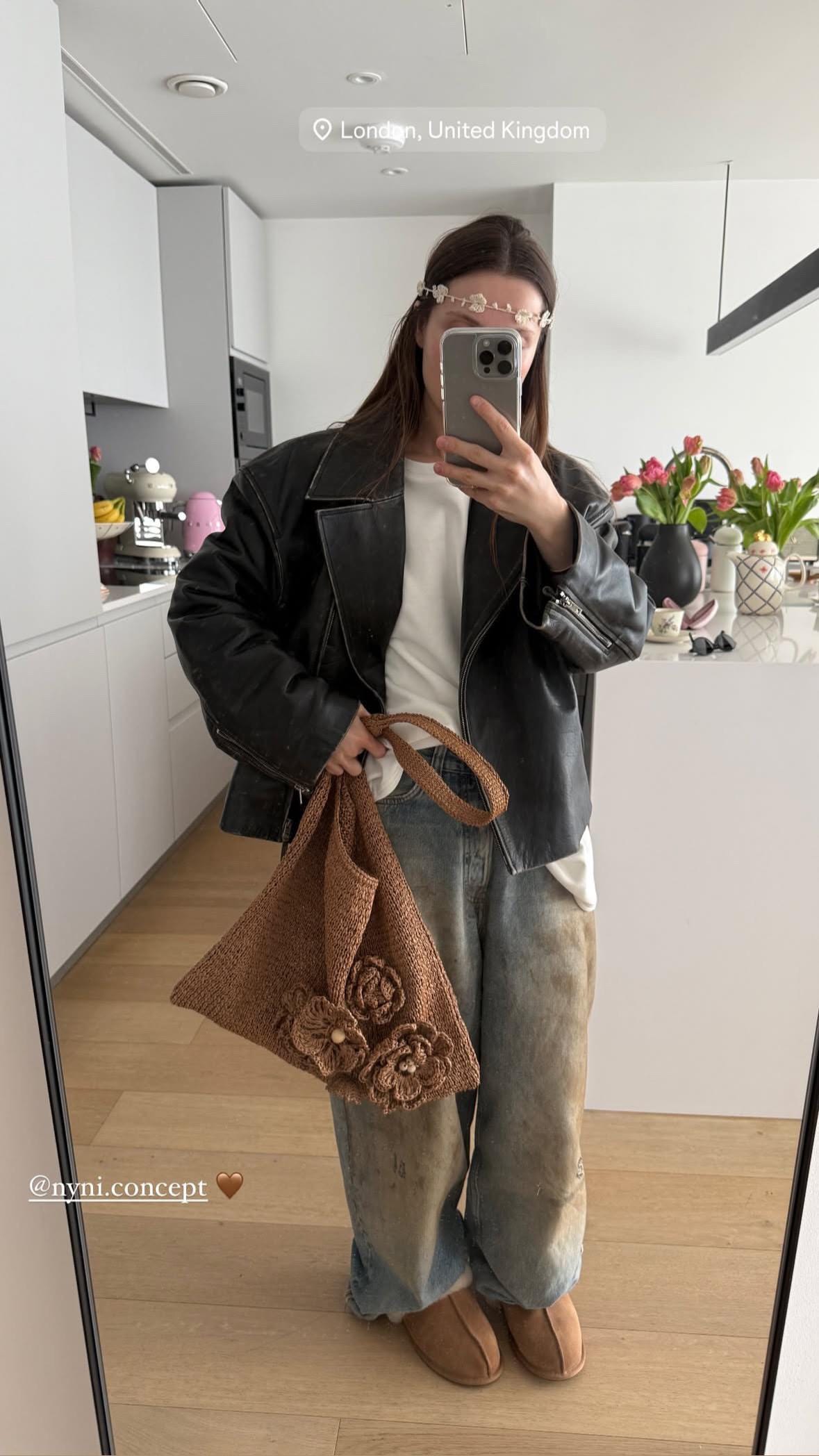 Handmade Raffia Tote Bag: Crochet Flower Eco-friendly Shopper