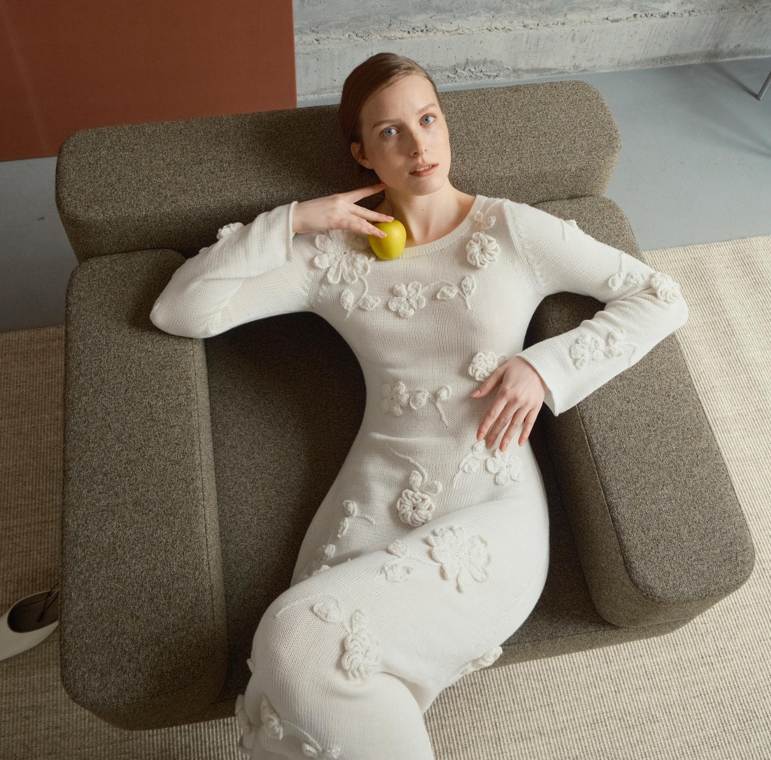 A white cotton dress with handcrafted floral details is a delicate blend of elegance and comfort. The natural fabric feels soft against the skin, making it a perfect choice for any season. The voluminous floral elements add uniqueness and a touch of tenderness to the look. A minimalist cut harmoniously accentuates the figure, creating a feminine silhouette. The set includes a beige slip dress. The dress is available in three sizes, ensuring a perfect fit. Ideal for special occasions, romantic outings, or everyday wear.